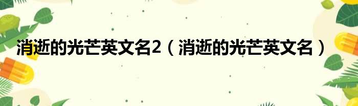 导读 大家好,今天小六子来为大家解答以下的问题,关于消逝的光芒英文名2,消逝的光芒英文名这个很多人还不知道,现在让我们一起来看看吧!1、The