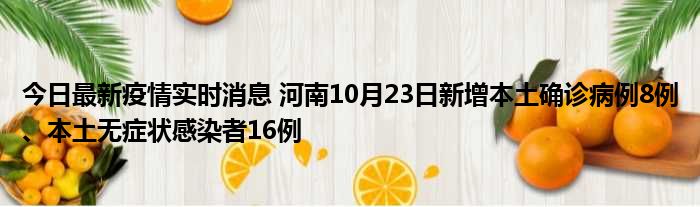 今日最新疫情实时消息 河南10月23日新增本土确诊病例8例、本土无症状感染者16例