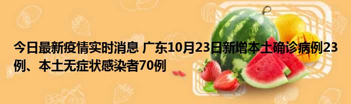 据广东卫健委,10月23日0-24时,广东省新增本土确诊病例23例(广州16例,佛山1例,中山4例,肇庆1例,清远1例);新增本土无症状感染者70