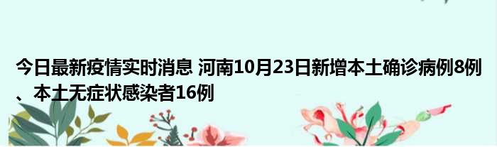 您的位置:首页 >动态频道 > 聚焦疫情 > 今日最新疫情实时消息 河南10月23日新增本土确诊病例8例、本土无症状感染者16例 2022-10-26 02:50:14 • 来源: 导读 免责声明:本文由用户上传,如有侵权请联系删除! 上一篇:今日最新疫情实时消息 内蒙古10月23日新增本土确诊病例32例、无症状感染者66例 下一篇:今日最新疫情实时消息 河南10月23日新增本土确诊病例8例、本土无症状感染者16例