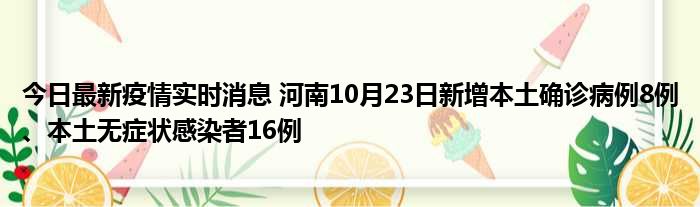 今日最新疫情实时消息 河南10月23日新增本土确诊病例8例、本土无症状感染者16例