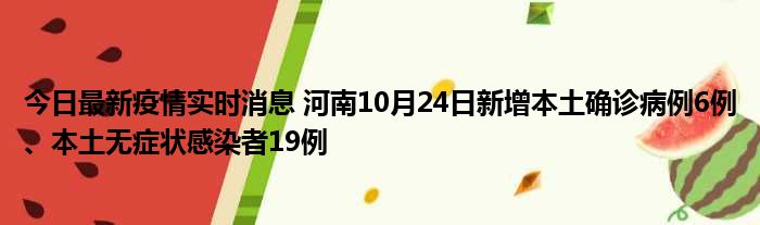 今日最新疫情实时消息 河南10月24日新增本土确诊病例6例、本土无症状感染者19例