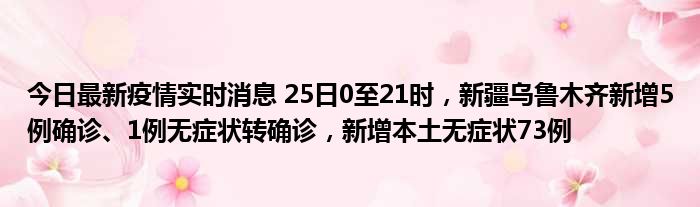 今日最新疫情实时消息 25日0至21时,新疆乌鲁木齐新增5例确诊、1例无症状转确诊,新增本土无症状73例