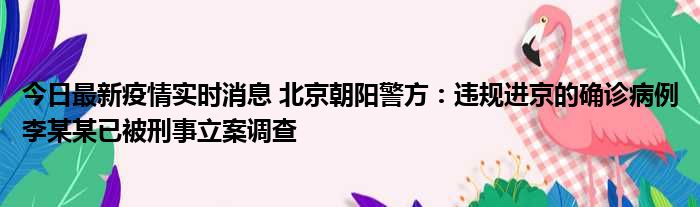 今日最新疫情实时消息 北京朝阳警方:违规进京的确诊病例李某某已被刑事立案调查