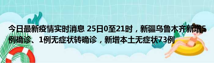今日最新疫情实时消息 25日0至21时,新疆乌鲁木齐新增5例确诊、1例无症状转确诊,新增本土无症状73例
