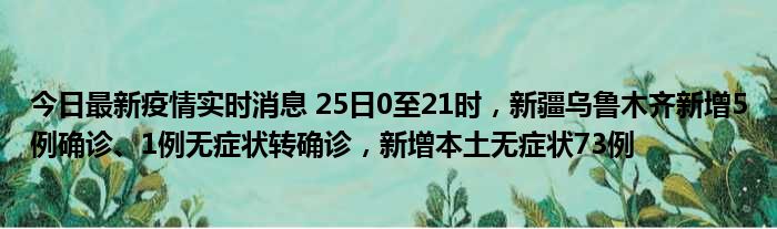 今日最新疫情实时消息 25日0至21时,新疆乌鲁木齐新增5例确诊、1例无症状转确诊,新增本土无症状73例