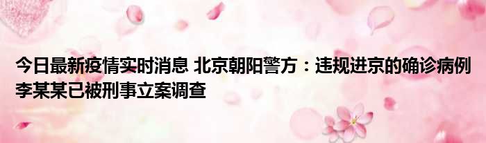 今日最新疫情实时消息 北京朝阳警方:违规进京的确诊病例李某某已被刑事立案调查