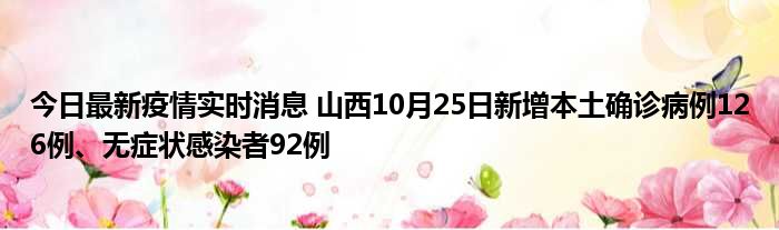 今日最新疫情实时消息 山西10月25日新增本土确诊病例126例、无症状感染者92例