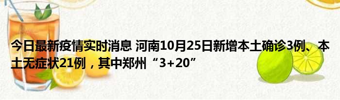 今日最新疫情实时消息 河南10月25日新增本土确诊3例、本土无症状21例,其中郑州“3+20”