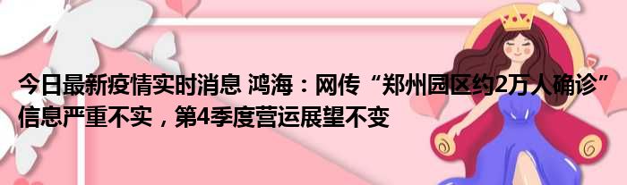 今日最新疫情实时消息 鸿海:网传“郑州园区约2万人确诊”信息严重不实,第4季度营运展望不变