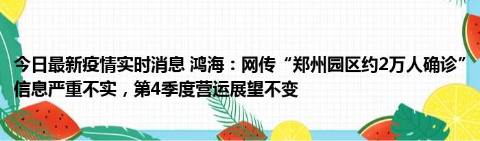 今日最新疫情实时消息 鸿海:网传“郑州园区约2万人确诊”信息严重不实,第4季度营运展望不变