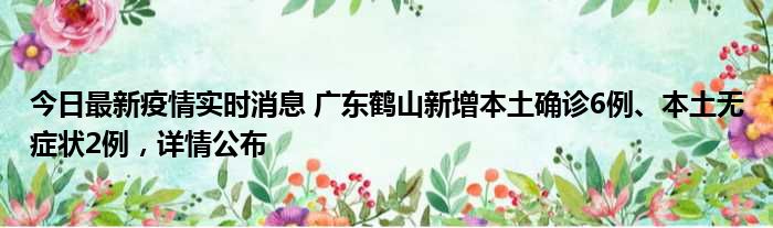 今日最新疫情实时消息 广东鹤山新增本土确诊6例、本土无症状2例,详情公布