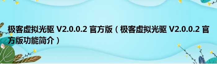 极客虚拟光驱 V2.0.0.2 官方版(极客虚拟光驱 V2.0.0.2 官方版功能简介)
