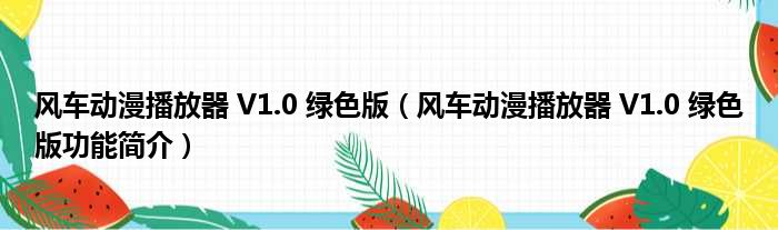 风车动漫播放器 V1.0 绿色版(风车动漫播放器 V1.0 绿色版功能简介)