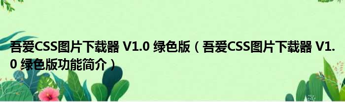 吾爱CSS图片下载器 V1.0 绿色版(吾爱CSS图片下载器 V1.0 绿色版功能简介)