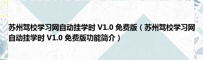 苏州驾校学习网自动挂学时 V1.0 免费版(苏州驾校学习网自动挂学时 V1.0 免费版功能简介)