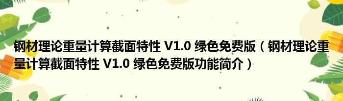 钢材理论重量计算截面特性 V1.0 绿色免费版(钢材理论重量计算截面特性 V1.0 绿色免费版功能简介)