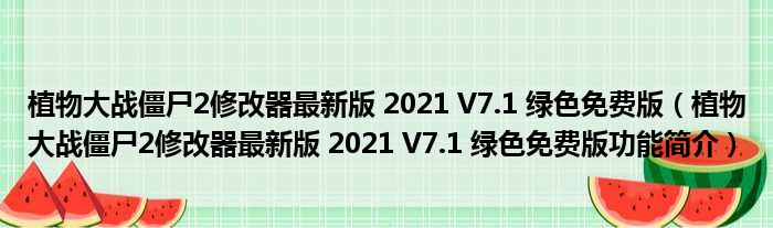 导读 大家好,关于植物大战僵尸2修改器最新版 2021 V7 1 绿色免费版,植物大战僵尸2修改器最新版 2021 V7 1 绿色免费版功能简介这个很多人