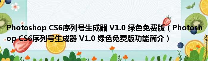 Photoshop CS6序列号生成器 V1.0 绿色免费版(Photoshop CS6序列号生成器 V1.0 绿色免费版功能简介)