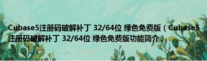 Cubase5注册码破解补丁 32/64位 绿色免费版(Cubase5注册码破解补丁 32/64位 绿色免费版功能简介)