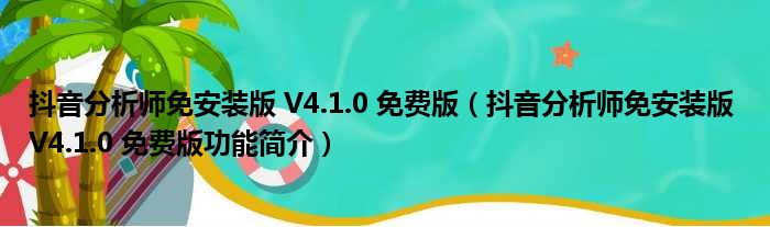导读 大家好,关于抖音分析师免安装版 V4 1 0 免费版,抖音分析师免安装版 V4 1 0 免费版功能简介这个很多人还不知道,小勒来为大家解答以上的