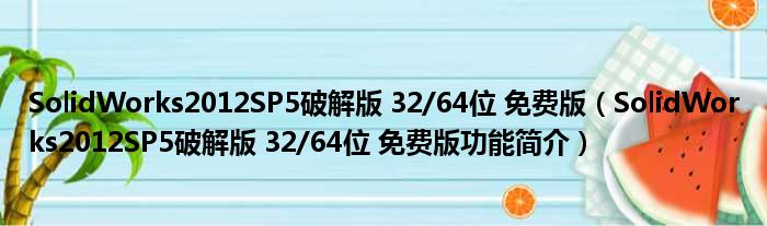 SolidWorks2012SP5破解版 32/64位 免费版(SolidWorks2012SP5破解版 32/64位 免费版功能简介)