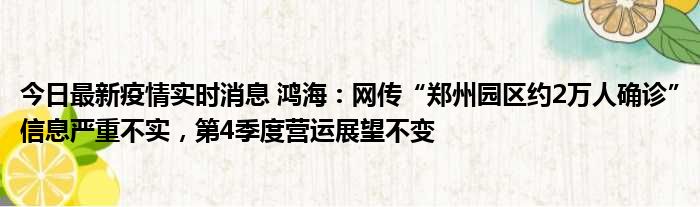 今日最新疫情实时消息 鸿海:网传“郑州园区约2万人确诊”信息严重不实,第4季度营运展望不变