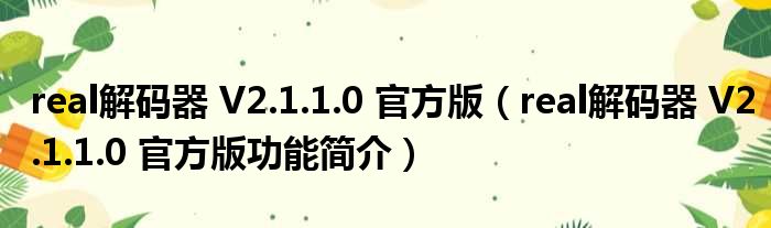 real解码器 V2.1.1.0 官方版(real解码器 V2.1.1.0 官方版功能简介)