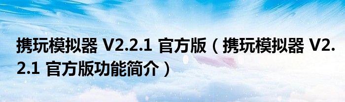 携玩模拟器 V2.2.1 官方版(携玩模拟器 V2.2.1 官方版功能简介)