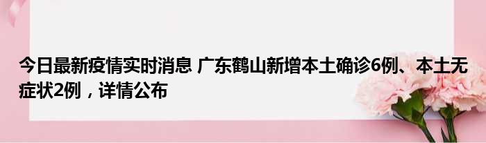 今日最新疫情实时消息 广东鹤山新增本土确诊6例、本土无症状2例,详情公布