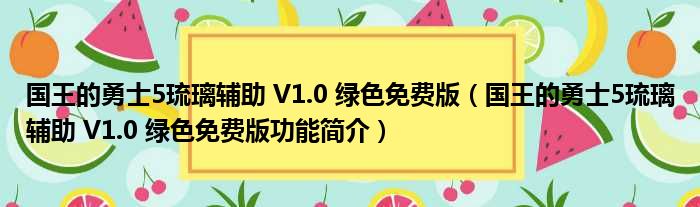 国王的勇士5琉璃辅助 V1.0 绿色免费版(国王的勇士5琉璃辅助 V1.0 绿色免费版功能简介)