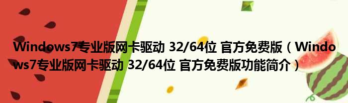 Windows7专业版网卡驱动 32/64位 官方免费版(Windows7专业版网卡驱动 32/64位 官方免费版功能简介)
