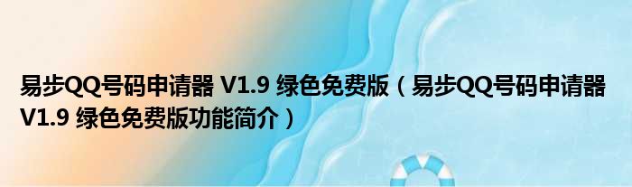 易步QQ号码申请器 V1.9 绿色免费版(易步QQ号码申请器 V1.9 绿色免费版功能简介)