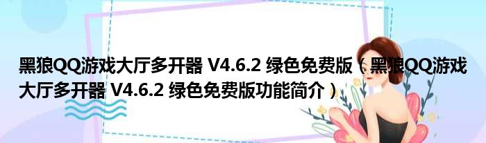 黑狼QQ游戏大厅多开器 V4.6.2 绿色免费版(黑狼QQ游戏大厅多开器 V4.6.2 绿色免费版功能简介)
