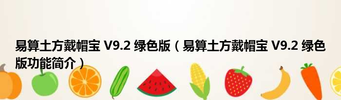 易算土方戴帽宝 V9.2 绿色版(易算土方戴帽宝 V9.2 绿色版功能简介)