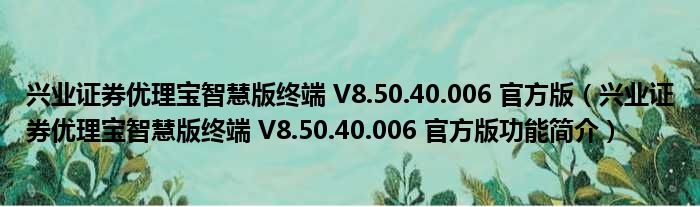 兴业证券优理宝智慧版终端 V8.50.40.006 官方版(兴业证券优理宝智慧版终端 V8.50.40.006 官方版功能简介)