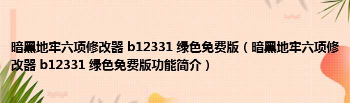 导读 大家好,关于暗黑地牢六项修改器 b12331 绿色免费版,暗黑地牢六项修改器 b12331 绿色免费版功能简介这个很多人还不知道,小勒来为大家解