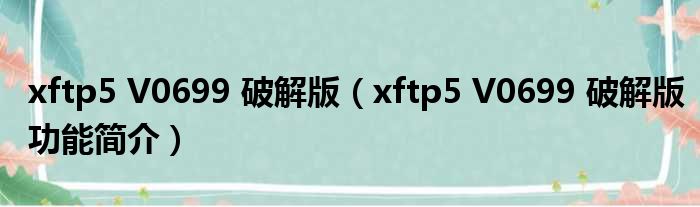xftp5 V0699 破解版(xftp5 V0699 破解版功能简介)