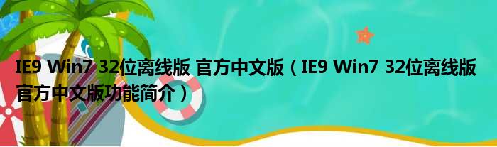 IE9 Win7 32位离线版 官方中文版(IE9 Win7 32位离线版 官方中文版功能简介)