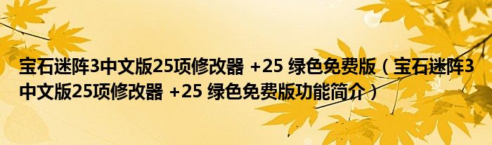 宝石迷阵3中文版25项修改器 +25 绿色免费版(宝石迷阵3中文版25项修改器 +25 绿色免费版功能简介)
