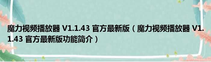 魔力视频播放器 V1.1.43 官方最新版(魔力视频播放器 V1.1.43 官方最新版功能简介)