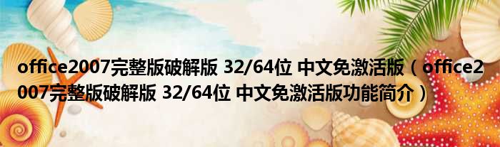 office2007完整版破解版 32/64位 中文免激活版(office2007完整版破解版 32/64位 中文免激活版功能简介)