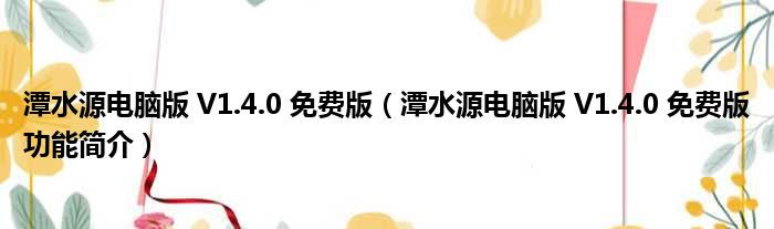 潭水源电脑版 V1.4.0 免费版(潭水源电脑版 V1.4.0 免费版功能简介)