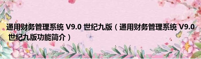 通用财务管理系统 V9.0 世纪九版(通用财务管理系统 V9.0 世纪九版功能简介)