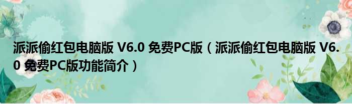 派派偷红包电脑版 V6.0 免费PC版(派派偷红包电脑版 V6.0 免费PC版功能简介)