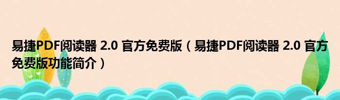 易捷PDF阅读器 2.0 官方免费版(易捷PDF阅读器 2.0 官方免费版功能简介)