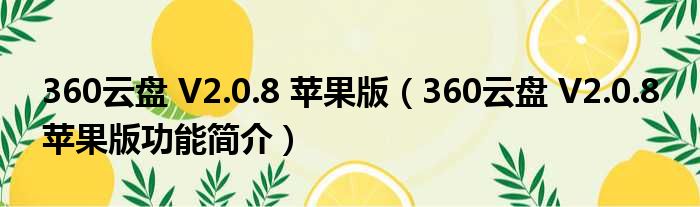 导读 大家好,关于360云盘 V2 0 8 苹果版,360云盘 V2 0 8 苹果版功能简介这个很多人还不知道,小勒来为大家解答以上的问题,现在让我们一起来