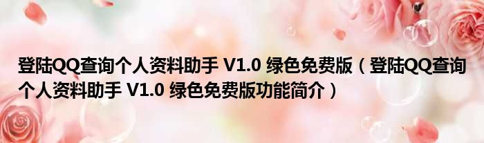 登陆QQ查询个人资料助手 V1.0 绿色免费版(登陆QQ查询个人资料助手 V1.0 绿色免费版功能简介)
