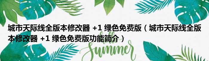 城市天际线全版本修改器 +1 绿色免费版(城市天际线全版本修改器 +1 绿色免费版功能简介)