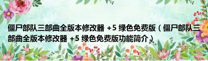 僵尸部队三部曲全版本修改器 +5 绿色免费版(僵尸部队三部曲全版本修改器 +5 绿色免费版功能简介)